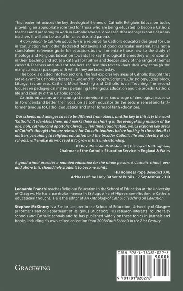 This reader introduces the key theological themes of Catholic Religious Education today, providing an appropriate core text for those who are being educated to become Catholic teachers and preparing to work in Catholic schools. An ideal aid for managers and classroom teachers, it will also be useful for catechists and parents. A Companion to Catholic Education is a resource for Catholic educators designed for use in conjunction with other dedicated textbooks and good curricular material. It is not a stand-alone reference guide for educators but will orientate those new to the study of theology and Religious Education towards the key theological themes they will encounter in their teaching and act as a catalyst for further and deeper study of the range of themes covered. Teachers and student teachers can use this text to chart their way through the many curricular packages with which they are faced today. The book is divided into two sections. The first explores key areas of Catholic thought that are relevant for Catholic educators - God and Philosophy, Scripture, Christology, Ecclesiology, Liturgy, Sacraments, Catholic Moral Teaching and Catholic Social Teaching. The second focuses on pedagogical matters pertaining to Religious Education and the broader Catholic life and identity of the Catholic school. Catholic educators are encouraged to develop their knowledge of theological issues so as to understand better their vocation as both educator (in the secular sense) and faith-former (unique to Catholic education and other forms of faith education). Contributors include: Fr John Bollan, Roisin Coll, John Deighan, Leonardo Franchi, Fr John Keenan, Fr Tom Kilbride, Mary Lappin, Stephen McKinney, Catherine O'Hare, Leon Robinson, Bishop Philip Tartaglia, Karen Wenell, Victoria Harrison ""Our schools and colleges have to be different from others, and the key to this is in the word 'Catholic'. It identifies them, and marks them as sharing in the evangelising mission of the one, holy, catholic and apostolic Church ... This timely publication, which explores key areas of Catholic thought that are relevant for Catholic teachers before looking in closer detail at matters pertaining to religious education and the broader Catholic life and identity of our schools, will enable all who read it to grow in this understanding."" Rt Rev. Malcolm McMahon OP, Bishop of Nottingham, Chairman of the Catholic Education Service in England & Wales ""A good school provides a rounded education for the whole person. A Catholic school, over and above this, should help students to become saints."" His Holiness Pope Benedict XVI, Address of the Holy Father to Pupils, 17 September 2010 Leonardo Franchi teaches Religious Education in the School of Education at the University of Glasgow. He has a particular interest in St Augustine of Hippo's contribution to Catholic educational thought. He is the editor of An Anthology of Catholic Teaching on Education. Stephen McKinney is a Senior Lecturer in the School of Education, University of Glasgow (a former Head of Department of Religious Education). His research interests include faith schools and Catholic schools and he has published widely on these topics in journals and books, including his own edited collection from 2008: Faith Schools in the 21st Century.
