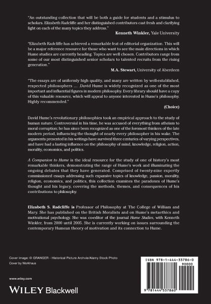 "Blackwell's fortieth Companion to Philosophy is a splendid and long-overdue Companion to Hume, expertly pulled together by Elizabeth Radcliffe, a former editor of the journal Hume Studies. Although the Blackwell Companions are promoted as a student reference series, this particular volume is clearly of considerable value to serious scholars as well." (Religion in the Age of Enlightenment, December 2010)"One distinctive feature of this Blackwell Companion to Hume is that it attempts to be more careful than is common with books of its sort to mark a distinction between explicating Hume's own ideas and arguments, and assessing their relevance to present-day philosophical discussion." (Notre Dame Philosophical Reviews, February 2009)