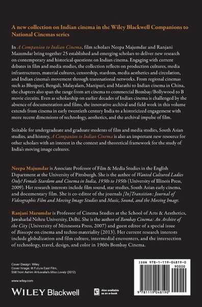 In A Companion to Indian Cinema, film scholars Neepa Majumdar and Ranjani Mazumdar along with 25 established and emerging scholars, deliver new research on contemporary and historical questions on Indian cinema. The collection considers Indian cinema's widespread presence both within and outside the country, and pays particular attention to regional cinemas such as Bhojpuri, Bengali, Malayalam, Manipuri, and Marathi. The volume also reflects on the changing dimensions of technology, aesthetics, and the archival impulse of film. The editors have included scholarship that discusses a range of films and film experiences that include commercial cinema, art cinema, and non-fiction film.