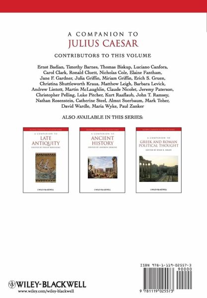 A Companion to Julius Caesar comprises 30 essays from leading scholars examining the life and after life of this great polarizing figure. Explores Caesar from a variety of perspectives: military genius, ruthless tyrant, brilliant politician, first class orator, sophisticated man of letters, and more Utilizes Caesar's own extant writings Examines the viewpoints of Caesar's contemporaries and explores Caesar's portrayals by artists and writers through the ages