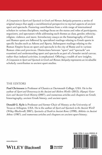 A Companion to Sport and Spectacle in Greek and Roman Antiquity presents a series of essays that apply a socio-historical perspective to myriad aspects of ancient sport and spectacle. * Covers the Bronze Age to the Byzantine Empire * Includes contributions from a range of international scholars with various Classical antiquity specialties * Goes beyond the usual concentrations on Olympia and Rome to examine sport in cities and territories throughout the Mediterranean basin * Features a variety of illustrations, maps, end-of-chapter references, internal cross-referencing, and a detailed index to increase accessibility and assist researchers…mehr