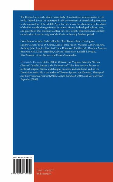 The Roman Curia is the oldest extant body of institutional administration in the world. Indeed, it was the prototype for the development of centralized government in the monarchies of the Middle Ages. Further, it was the administrative backbone of the first worldwide organization in human history. It developed policies, laws, and procedures that continue to affect the entire world. This book offers scholarly contributions from the origins of the Curia to the early modern period. Contributors include Barbara Bombi, Elena Bonora, Bruce Brasington, Sandro Carocci, Peter D. Clarke, Maria Teresa Fattori, Massimo Carlo Giannini, Anthony Lappin, Rita Lizzi Testa, Rosamond McKitterick, Dominic Moreau, Bronwen Neil, Miles Pattenden, Giovanni Pizzorusso, Donald Prudlo, Kirsi Salonen, Cesare Santus, and Danica Summerlin.