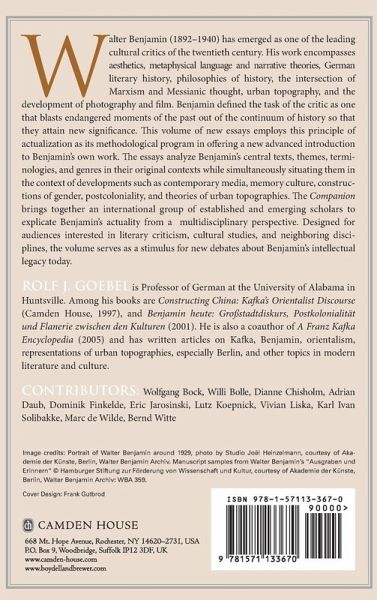 Walter Benjamin (1892-1940) has emerged as one of the leading cultural critics of the twentieth century. His work encompasses aesthetics, metaphysical language and narrative theories, German literary history, philosophies of history, the intersection of Marxism and Messianic thought, urban topography, and the development of photography and film. Benjamin defined the task of the critic as one that blasts endangered moments of the past out of the continuum of history so that they attain new significance. This volume of new essays employs this principle of actualization as its methodological program in offering a new advanced introduction to Benjamin's own work. The essays analyze Benjamin's central texts, themes, terminologies, and genres in their original contexts while simultaneously situating them in new parameters, such as contemporary media, memory culture, constructions of gender, postcoloniality, and theories of urban topographies. The Companion brings together an international group of established and emerging scholars to explicate Benjamin's actuality from a multidisciplinary perspective. Designed for audiences interested in literary criticism, cultural studies, and neighboring disciplines, the volume serves as a stimulus for new debates about Benjamin's intellectual legacy today. CONTRIBUTORS: Dominik Finkelde, Wolfgang Bock, Bernd Witte, Lutz Koepnick, Eric Jarosinski, Karl Ivan Solibakke, Marc de Wilde, Vivian Liska, Willi Bolle, Dianne Chisholm, Adrian Daub. ROLF J. GOEBEL is Professor of German at the University of Alabama in Huntsville.