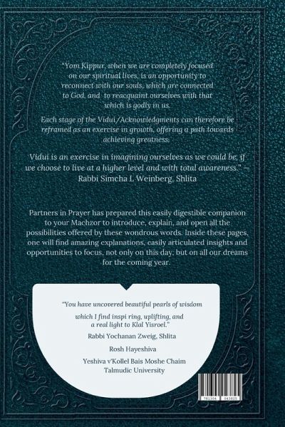 Dive deeper into your Yom Kippur prayers with "A Companion to the Yom Kippur Machzor by Rabbi Simcha L. Weinberg, Shlita. This insightful guide transforms the Siddur into a workbook for spiritual growth and service to Hashem. Rabbi Weinberg's profound teachings provide the inspiration and understanding needed to elevate your Davening, allowing you to connect more deeply with the words and their meanings. Enhance your Yom Kippur experience with this essential companion, designed to enrich your spiritual journey and bring you closer to Hashem.