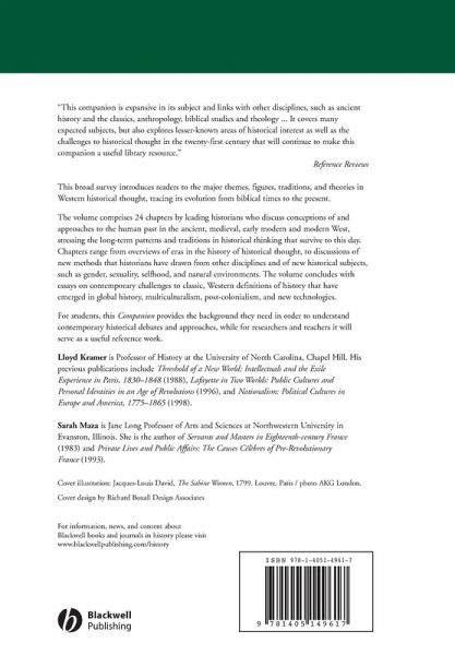 "This companion is expansive in its subject and links with other disciplines, such as ancient history and the classics, anthropology, Biblical studies and theology... It covers many expected subjects, but also explores lesser-known areas of historical interest as well as the challenges to historical thought in the twenty-first century that will continue to make this companion a useful library resource." Reference Reviews