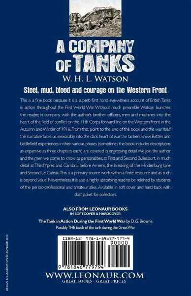 Steel, mud, blood and courage on the Western Front This is a fine book because it is a superb first hand eye-witness account of British Tanks in action throughout the First World War. Without much preamble Watson launches the reader, in company with the author's brother officers, men and machines into the heart of the field of conflict on the 11th Corps forward line on the Western Front in the Autumn and Winter of 1916. From that point to the end of the book and the war itself the narrative takes us inexorably into the dark heart of war the tankers knew. Battles and battlefield experiences in their various phases (sometimes the book includes descriptions as expansive as three chapters each) are covered in engrossing detail. We join the author and the men we come to know as personalities, at First and Second Bullecourt, in much detail at Third Ypres and Cambrai before Amiens, the breaking of the Hindenburg Line and Second Le Cateau. This is a primary source work within a finite resource and as such is beyond value. Nevertheless, it is also a highly absorbing read to be relished by students of the period-professional and amateur alike. Available in soft cover and hard back with dust jacket for collectors.