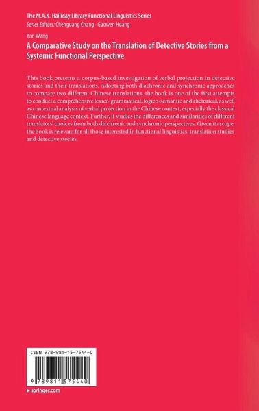 This book presents a corpus-based investigation of verbal projection in detective stories and their translations. Adopting both diachronic and synchronic approaches to compare two different Chinese translations, the book is one of the first attempts to conduct a comprehensive lexico-grammatical, logico-semantic and rhetorical, as well as contextual analysis of verbal projection in the Chinese context, especially the classical Chinese language context. Further, it studies the differences and similarities of different translators' choices from both diachronic and synchronic perspectives. Given its scope, the book is relevant for all those interested in functional linguistics, translation studies and detective stories.