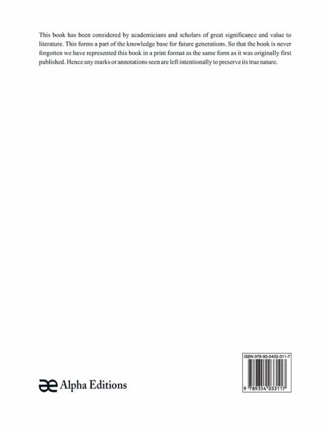 This book has been considered by academicians and scholars of great significance and value to literature. This forms a part of the knowledge base for future generations. So that the book is never forgotten we have represented this book in a print format as the same form as it was originally first published. Hence any marks or annotations seen are left intentionally to preserve its true nature.