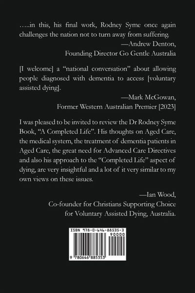 This book presents Dr Syme's views on the plight of people with dementia, and his suggestion for further legislative change. The book's title reflects a life that has been long, and where all that was possible has been achieved - and so is in a sense 'complete'. There follows consideration of the problems that may follow, and what may be a reasonable response.