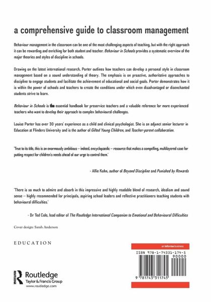 Behaviour management in the classroom can be one of the most challenging aspects of teaching, but with the right approach it can be rewarding and enriching for both student and teacher. A Comprehensive Guide to Classroom Management provides a systematic overview of the major theories and styles of discipline in schools. Drawing on the latest international research, Porter outlines how teachers can develop a personal style in classroom management based on a sound understanding of theory. The emphasis is on proactive, authoritative approaches to discipline to engage students and facilitate the achievement of educational and social goals. Porter demonstrates how it is within the power of schools and teachers to create the conditions under which even disadvantaged or disenchanted students strive to learn. A Comprehensive Guide to Classroom Management is the essential handbook for preservice teachers and a valuable reference for more experienced teachers who want to develop their approach to complex behavioural challenges.