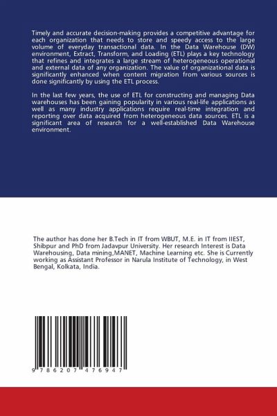 Timely and accurate decision-making provides a competitive advantage for each organization that needs to store and speedy access to the large volume of everyday transactional data. In the Data Warehouse (DW) environment, Extract, Transform, and Loading (ETL) plays a key technology that refines and integrates a large stream of heterogeneous operational and external data of any organization. The value of organizational data is significantly enhanced when content migration from various sources is done significantly by using the ETL process.In the last few years, the use of ETL for constructing and managing Data warehouses has been gaining popularity in various real-life applications as well as many industry applications require real-time integration and reporting over data acquired from heterogeneous data sources. ETL is a significant area of research for a well-established Data Warehouse environment.