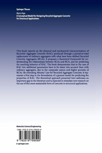 This book reports on the physical and mechanical characterization of Recycled Aggregate Concrete (RAC), produced through a partial-to-total replacement of ordinary aggregates with what have been dubbed Recycled Concrete Aggregates (RCAs). It proposes a theoretical framework for understanding the relationships between RCAs and RCA, and for predicting the resulting behavior of RAC. The book demonstrates that in the case of RAC two additional parameters have to be taken into account than with ordinary aggregates, due to the composite nature and higher porosity of RCAs. By extending Abrams' Law for Recycled Aggregate Concrete, it represents a first step in the formulation of a general model for predicting the properties of RAC. The theoretical approach presented here addresses an important gap in the literature and is expected to stimulate new research on the use of this more sustainable form of concrete in structural applications.