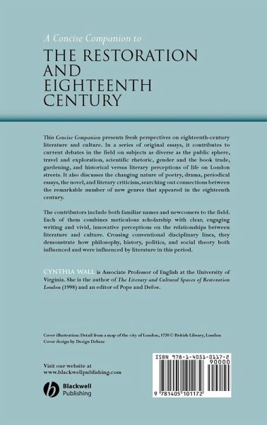 This Concise Companion presents fresh perspectives on eighteenth-century literature. * Contributes to current debates in the field on subjects such as the public sphere, travel and exploration, scientific rhetoric, gender and the book trade, and historical versus literary perceptions of life on London streets. * Searches out connections between the remarkable number of new genres that appeared in the eighteenth century. * Crosses conventional disciplinary lines. * Demonstrates that philosophy, history, politics and social theory both influence and are influenced by literature.