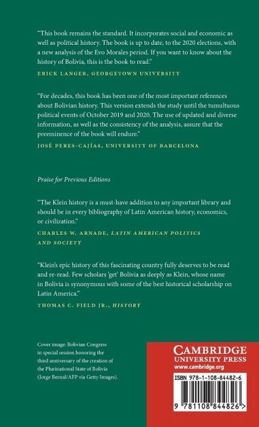 1. Geography and pre-Colombian civilization 2. The creation of a colonial society 3. Late colonial society: Crisis and growth 4. Revolution and the creation of a nation-state, 1809-1841 5. The crisis of the state, 1841-1880 6. The ages of silver and tin, 1880-1932 7. Disintegration of the established order, 1932-1952 8. From the national revolution to the Cold War, 1952-1982 9. Creating a multiethnic democracy, 1982-2002 10. The emergence of a mestizo and indigenous elite Political chronology Tables Bibliography Index.