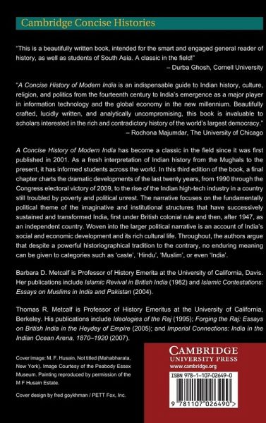 A Concise History of Modern India by Barbara D. Metcalf and Thomas R. Metcalf, has become a classic in the field since it was first published in 2001. As a fresh interpretation of Indian history from the Mughals to the present, it has informed students across the world. In the third edition of the book, a final chapter charts the dramatic developments of the last twenty years, from 1990 through the Congress electoral victory of 2009, to the rise of the Indian high-tech industry in a country still troubled by poverty and political unrest. The narrative focuses on the fundamentally political theme of the imaginative and institutional structures that have successively sustained and transformed India, first under British colonial rule and then, after 1947, as an independent country. Woven into the larger political narrative is an account of India's social and economic development and its rich cultural life.