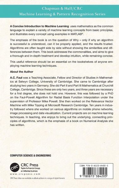 A Concise Introduction to Machine Learning uses mathematics as the common language to explain a variety of machine learning concepts from basic principles, and illustrates every concept using examples in MATLAB.