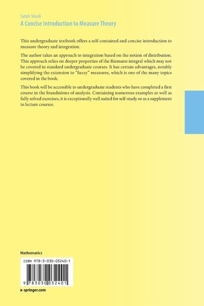 The author takes an approach to integration based on the notion of distribution. This approach relies on deeper properties of the Riemann integral which may not be covered in standard undergraduate courses. It has certain advantages, notably simplifying the extension to "fuzzy" measures, which is one of the many topics covered in the book.