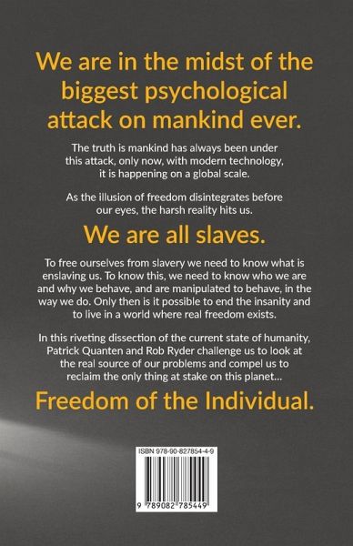 We are in the midst of the biggest psychological attack on mankind ever. The truth is mankind has always been under this attack, only now, with modern technology, it is happening on a global scale. As the illusion of freedom disintegrates before our eyes, the harsh reality hits us. We are all slaves. To free ourselves from slavery we need to know what is enslaving us. To know this, we need to know who we are and why we behave, and are manipulated to behave, in the way we do. Only then is it possible to end the insanity and to live in a world where real freedom exists. In this riveting dissection of the current state of humanity, Patrick Quanten and Rob Ryder challenge us to look at the real source of our problems and compel us to reclaim the only thing at stake on this planet... Freedom of the Individual.