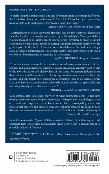 In A Consequentialist Defense of Libertarianism, Richard Fumerton argues that empirical facts concerning consequences must always play a crucial role in a plausible defense of freedom. After making distinctions between morality and law, he defends the view that it is a fundamental mistake to think that the law should always, or even usually, attempt to mirror morality. With this framework in place, Fumerton addresses various controversial questions concerning when the law ought to side with freedom. He offers a nuanced defense of several positions shared by many "moderate" libertarians. This consequentialist defense of freedom offers a fresh perspective on some very old philosophical debates. As more people become frustrated with a perceived lack of principled attempts by established political parties to appreciate important concerns people have involving their desire for freedom, the issues discussed in this book are particularly timely.