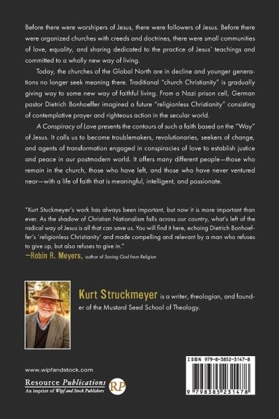 Before there were worshipers of Jesus, there were followers of Jesus. Before there were organized churches with creeds and doctrines, there were small communities of love, equality, and sharing dedicated to the practice of Jesus' teachings and committed to a wholly new way of living. Today, the churches of the Global North are in decline and younger generations no longer seek meaning there. Traditional "church Christianity" is gradually giving way to some new way of faithful living. From a Nazi prison cell, German pastor Dietrich Bonhoeffer imagined a future "religionless Christianity" consisting of contemplative prayer and righteous action in the secular world. A Conspiracy of Love presents the contours of such a faith based on the "Way" of Jesus. It calls us to become troublemakers, revolutionaries, seekers of change, and agents of transformation engaged in conspiracies of love to establish justice and peace in our postmodern world. It offers many different people--those who remain in the church, those who have left, and those who have never ventured near--with a life of faith that is meaningful, intelligent, and passionate.