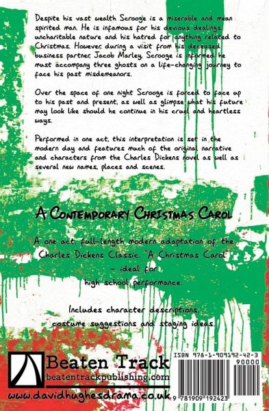 Despite his vast wealth Scrooge is a miserable and mean spirited man. He is infamous for his devious dealings, uncharitable nature and his hatred for anything related to Christmas. However, during a visit from his deceased business partner, Jacob Marley, Scrooge is informed he must accompany three ghosts on a life-changing journey to face his past misdemeanors. Over the space of one night Scrooge is forced to face up to his past and present, as well as glimpse what his future may look like should he continue in his cruel and heartless ways. Performed in one act, this interpretation of A Christmas Carol is set in the modern day and features much of the original narrative and characters from the Charles Dickens novel as well as several new names, places and scenes.