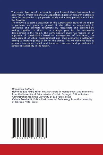 The prime objective of the book is to put forward ideas that come from observation, critical thinking and applications based on research outcomes, from the perspective of people who study and actively participates in life in the Amazon. The motive is to start a discussion on the sustainability issues of the region in particular and globe in general. It also offers an opportunity to contribute and promote reflections by researchers and stakeholders, aiming together to think of a strategic plan for the sustainable development in the region. This contemporary study has focused on an approach of sustainability based on management of innovation, the management of cities, organizational and socio-economic development aiming to improve-quality of life on the planet. This will definitely help to promote innovation based and improved processes and procedures to achieve sustainability in the region.