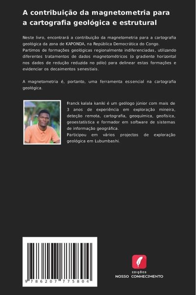 Neste livro, encontrará a contribuição da magnetometria para a cartografia geológica da zona de KAPONDA, na República Democrática do Congo.Partimos de formações geológicas regionalmente indiferenciadas, utilizando diferentes tratamentos de dados magnetométricos (o gradiente horizontal nos dados de redução reduzida no pólo) para delinear estas formações e evidenciar os decaimentos senestiais.A magnetometria é, portanto, uma ferramenta essencial na cartografia geológica.