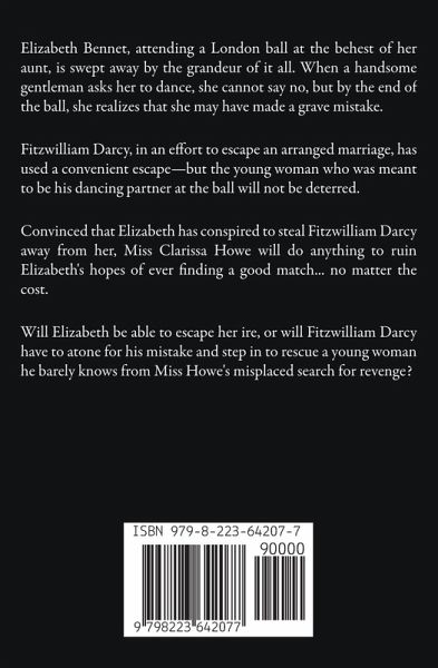 Elizabeth Bennet, attending a London ball at the behest of her aunt, is swept away by the grandeur of it all. When a handsome gentleman asks her to dance, she cannot say no, but by the end of the ball, she realizes that she may have made a grave mistake. Fitzwilliam Darcy, in an effort to escape an arranged marriage, has used a convenient escape-but the young woman who was meant to be his dancing partner at the ball will not be deterred. Convinced that Elizabeth has conspired to steal Fitzwilliam Darcy away from her, Miss Clarissa Howe will do anything to ruin Elizabeth's hopes of ever finding a good match... no matter the cost. Will Elizabeth be able to escape her ire, or will Fitzwilliam Darcy have to atone for his mistake and step in to rescue a young woman he barely knows from Miss Howe's misplaced search for revenge? A Convenient Escape is a sweet and clean Pride and Prejudice Variation that is suitable for all lovers of Jane Austen's romantic classic.
