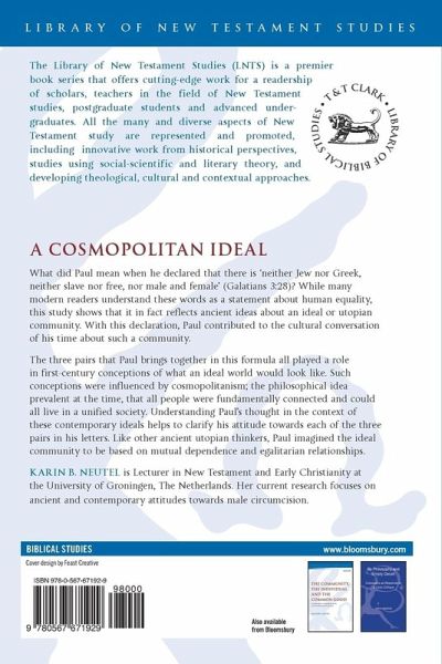 What did Paul mean when he declared that there is 'neither Jew nor Greek, neither slave nor free, nor male and female' (Galatians 3:28)? While many modern readers understand these words as a statement about human equality, this study shows that it in fact reflects ancient ideas about an ideal or utopian community. With this declaration, Paul contributed to the cultural conversation of his time about such a community. The three pairs that Paul brings together in this formula all played a role in first-century conceptions of what an ideal world would look like. Such conceptions were influenced by cosmopolitanism; the philosophical idea prevalent at the time, that all people were fundamentally connected and could all live in a unified society. Understanding Paul's thought in the context of these contemporary ideals helps to clarify his attitude towards each of the three pairs in his letters. Like other ancient utopian thinkers, Paul imagined the ideal community to be based on mutual dependence and egalitarian relationships.