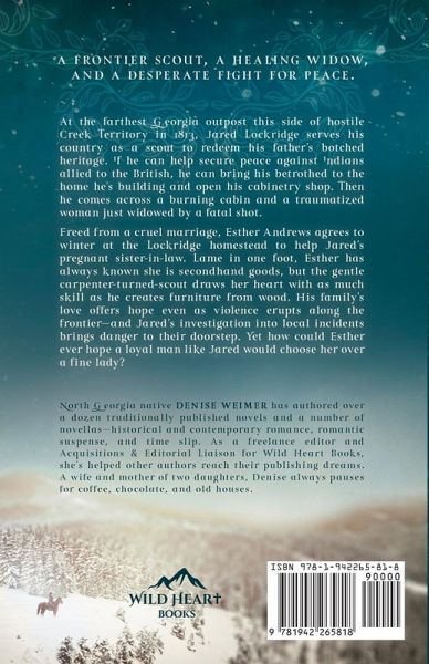 A frontier scout, a healing widow, and a desperate fight for peace. At the farthest Georgia outpost this side of hostile Creek Territory in 1813, Jared Lockridge serves his country as a scout to redeem his father's botched heritage. If he can help secure peace against Indians allied to the British, he can bring his betrothed to the home he's building and open his cabinetry shop. Then he comes across a burning cabin and a traumatized woman just widowed by a fatal shot. Freed from a cruel marriage, Esther Andrews agrees to winter at the Lockridge homestead to help Jared's pregnant sister-in-law. Lame in one foot, Esther has always known she is secondhand goods, but the gentle carpenter-turned-scout draws her heart with as much skill as he creates furniture from wood. His family's love offers hope even as violence erupts along the frontier-and Jared's investigation into local incidents brings danger to their doorstep. Yet how could Esther ever hope a loyal man like Jared would choose her over a fine lady?