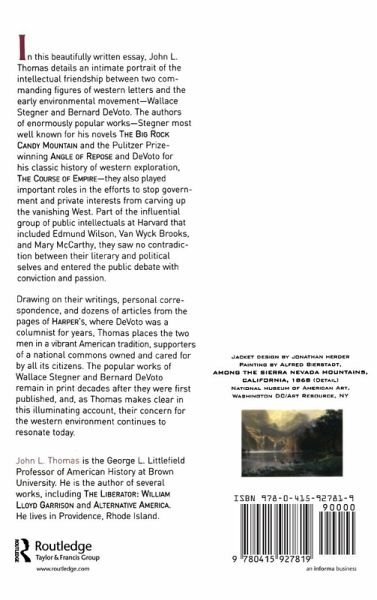 In this beautifully written account, John Thomas details an intimate portrait of the intellectual friendship between two commanding figures of western letters and the early environmental movement--Wallace Stegner and Bernard DeVoto.. The authors of enormously popular works--Stegner most well known for his novels The Big Rock Candy Mountain and the Pulitzer Prize-winning Angle of Repose and DeVoto for his classic history of western exploration, The Course of Empire--they also played important roles in the efforts to stop government and private interests from carving up the vanishing West. Part of the fractious group of public intellectuals at Harvard that included Edmund Wilson, Mary McCarthy, and Arthur Schlesinger, Sr., they saw no contradiction between their literary and political selves and entered the public debate with conviction and passion. Drawing on their writings, personal correspondence, and dozens of articles from the pages of Harper's, where DeVoto was a columnist for years, this illuminating account demonstrates how their concerns for the western environment continue to resonate today.