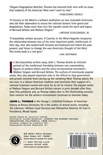 In this beautifully written account, John Thomas details an intimate portrait of the intellectual friendship between two commanding figures of western letters and the early environmental movement--Wallace Stegner and Bernard DeVoto.. The authors of enormously popular works--Stegner most well known for his novels The Big Rock Candy Mountain and the Pulitzer Prize-winning Angle of Repose and DeVoto for his classic history of western exploration, The Course of Empire--they also played important roles in the efforts to stop government and private interests from carving up the vanishing West. Part of the fractious group of public intellectuals at Harvard that included Edmund Wilson, Mary McCarthy, and Arthur Schlesinger, Sr., they saw no contradiction between their literary and political selves and entered the public debate with conviction and passion. Drawing on their writings, personal correspondence, and dozens of articles from the pages of Harper's, where DeVoto was a columnist for years, this illuminating account demonstrates how their concerns for the western environment continue to resonate today.
