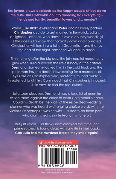 The joyous crowd applauds as the happy couple strides down the aisle. This Cotswolds country wedding has everything - friends and family, beautiful flowers and... murder? When Julia Bird's ex-husband Peter and his lovely partner Christopher decide to get married in Berrywick, Julia is delighted - after all, who doesn't love a country wedding? Little does Julia know that normally calm and collected Christopher will turn into a full-on Groomzilla - and that by the end of the night, someone will end up dead. The morning after the big day, the jolly nuptial mood turns grim when Julia discovers the lifeless body of the caterer, Desmond. Someone locked him in the cold truck and the poor man froze to death. Now looking for a murderer, all eyes are on Christopher who, mid-tantrum, had publicly threatened to kill him. Convinced that Christopher is innocent, Julia vows to find the real culprit. Julia soon discovers Desmond had a long list of enemies as she races against the clock to clear Christopher's name. Could his death be the work of the respected wedding planner who was heard exchanging choice words with the victim? Or perhaps it was his wife - 'til death do them part - who didn't shed a single tear at his funeral? But just when Julia thinks she's cracked the case, her prime suspect is found dead with a knife in their back. Can Julia find the murderer before they strike again? An utterly gripping, charming cosy mystery set in the English countryside. Fans of M.C. Beaton, Faith Martin and Betty Rowlands will love the Julia Bird Mysteries. Readers are loving the Julia Bird Mysteries: 'I absolutely LOVED this... Julia Bird was an amazing and lovable character... Once I started it, I couldn't stop.' Goodreads reviewer, ¿¿¿¿¿ 'There just aren't enough stars for this one, so I can only give it FIVE!!' Goodreads reviewer, ¿¿¿¿¿ 'Oh my, I loved Julia Bird... she is a delight! I can't wait for the next one! Please don't let it be long!' MoongloTexas, ¿¿¿¿¿ 'Fabulous... addictive... a witty and delightful crime novel full of delicious red herrings, rural mischief and bucolic charm that is impossible to put down.' Bookish Jottings 'I was hooked on the mystery immediately... If you haven't read this series you are missing out! Pure entertainment... a fabulous read and I can't wait for the next one.' @onceuponatimebookreviews, ¿¿¿¿¿ 'Kept me engrossed and I completed the book within a day... I would highly recommend this cosy crime page-turner as the perfect indulgent summer evening escape.' NetGalley reviewer, ¿¿¿¿¿