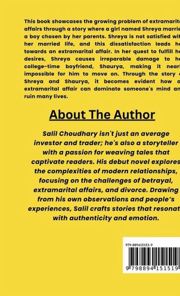 This book showcases the growing problem of extramarital affairs through a story where a girl named Shreya marries a boy chosen by her parents. Shreya is not satisfied with her married life, and this dissatisfaction leads her towards an extramarital affair. In her quest to fulfill her desires and lust, she meets her ex-boyfriend Shaurya once again. Soon, she realizes her wants and desires couldn't be fulfilled by Shaurya and she needs someone else in her life. Jumping from one relationship to another makes Shreya's life miserable and she is stuck in the loop of extramarital affairs. Through the story of Shreya and Shaurya, it becomes evident how an extramarital affair can dominate someone's mind and ruin many lives.