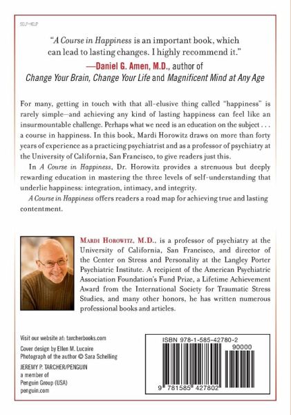 "Wise counsel from one of America's most respected psychiatrists." -Irvin Yalom, author of Staring at the Sun and When Nietzsche Wept, Emeritus Professor of Psychiatry, Stanford University For many, getting in touch with that elusive thing called "happiness" is rarely simple-and achieving any kind of lasting happiness can feel like an insurmountable challenge. Perhaps what we need is an education on the subject . . . A Course in Happiness. In this book, Mardi Horowitz draws on more than forty years of experience as a practicing psychiatrist to provide readers with just this. According to Dr. Horowitz, happiness is essentially a by-product of self-knowledge; in order to be happy, we need to understand who we truly are. In A Course in Happiness, he details a deeply rewarding course in mastering the three levels of self-understanding that underlie happiness: Integration: the ability to assemble all the pieces of one's self into a whole, complete, understood, and respected "me." Intimacy: the capacity to remain closely connected to the warmth of relationships with family, friends, colleagues, and others in a social community. Integrity: the insight to know which of one's values are most dear and which are lower in priority-and then to be true to what is the most important, even in the midst of conflict. A Course in Happiness offers a road map for achieving genuine and lasting contentment.