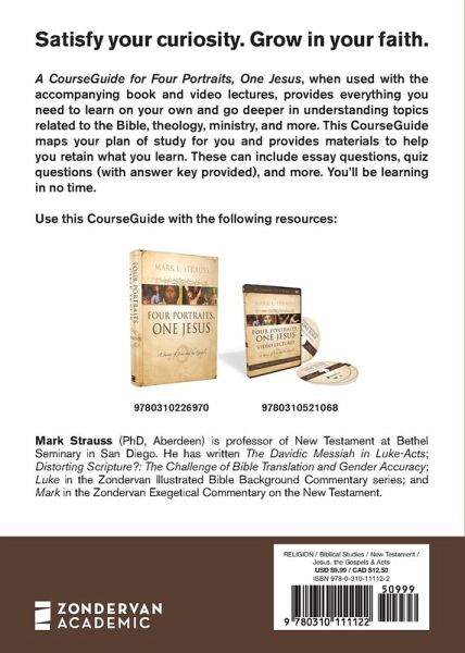A CourseGuide for Four Portraits, One Jesus, when used with the accompanying book and video lectures, provides everything you need to learn on your own and go deeper in understanding topics related to the Bible, theology, ministry, and more.