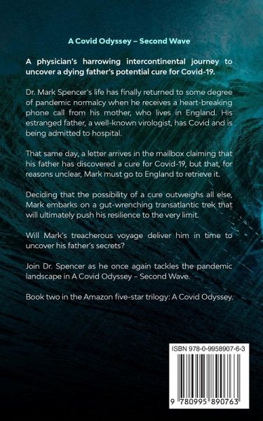 A physician's harrowing intercontinental journey to uncover a dying father's potential cure for Covid-19. Dr. Mark Spencer's life has finally returned to some degree of pandemic normalcy when he receives a heart-breaking phone call from his mother, who lives in England. His estranged father, a well-known virologist, has Covid and is being admitted to hospital. That same day, a letter arrives in the mailbox claiming that his father has discovered a cure for Covid-19, but that, for reasons unclear, Mark must go to England to retrieve it. Deciding that the possibility of a cure outweighs all else, Mark embarks on a gut-wrenching transatlantic trek that will ultimately push his resilience to the very limit. Will Mark's treacherous voyage deliver him in time to uncover his father's secrets? Join Dr. Spencer as he once again tackles the pandemic landscape in A Covid Odyssey - Second Wave.