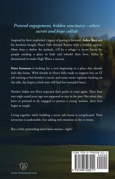 Get ready for another mini-series in the best-selling Heart Falls world. ------- Pretend engagement, hidden sanctuary-where secrets and hope collide Inspired by their stepfather's legacy of paying it forward, Aiden Skye and his brothers bought Heart Falls Animal Rescue with a hidden agenda. More than a shelter for animals, it'll be a refuge-a secret haven for people needing a place to hide and rebuild their lives. Aiden is determined to make High Water a success. Petra Sorenson is looking for a new beginning in a place that already feels like home. With friends in Heart Falls ready to support her, an IT job waiting at her brother's ranch, and some secret vigilante hacking on the side, she hopes a fresh start will heal her trampled heart. Neither Aiden nor Petra expected their paths to cross again. Their fiery one-night stand years ago was supposed to stay in the past. But when they have to pretend to be engaged to protect a young woman, their lives begin to tangle. Living together while building a secret safe house is complicated. Their attraction is undeniable, but adding real emotions to lies is messy. But a little pretending never hurt anyone...right?