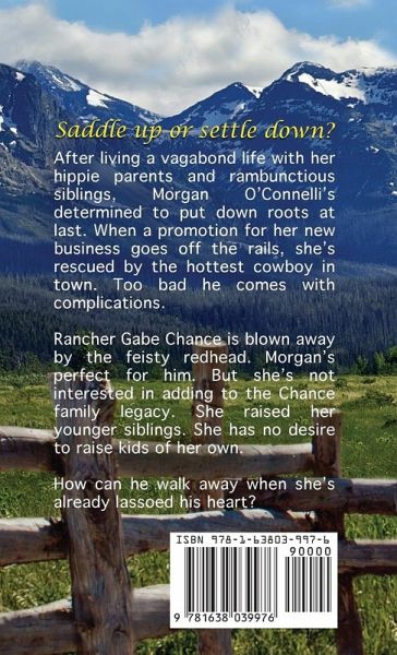 Saddle up or settle down? After living a vagabond life with her hippie parents and rambunctious siblings, Morgan O'Connelli's determined to put down roots at last. When a promotion for her new business goes off the rails, she's rescued by the hottest cowboy in town. Too bad he comes with complications. Rancher Gabe Chance is blown away by the feisty redhead. Morgan's perfect for him. But she's not interested in adding to the Chance family legacy. She raised her younger siblings. She has no desire to raise kids of her own. How can he walk away when she's already lassoed his heart? Saddle up for…mehr
