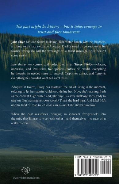 The past might be history-but it takes courage to trust and face tomorrow Jake Skye has one focus: building High Water Ranch with his brothers, a tribute to his late stepfather's legacy. Disillusioned by corruption in his former workplace and the wreckage of a failed marriage, trust doesn't come easily. Jake thrives on control and order, but when Tansy Fields-vibrant, impulsive, and irresistibly free-spirited-enters his world, everything he thought he needed starts to unravel. Opposites attract, and Tansy is everything he shouldn't want but can't resist. Adopted at twelve, Tansy has mastered the art of living in the moment, refusing to let her painful childhood define her. Now, she's starting fresh as the cook at High Water, and Jake Skye is a sexy challenge she's ready to take on. But trusting her own worth? That's the hard part. And Jake? He's not the kind of man to let loose easily-until she shows him how. When the past resurfaces, bringing an innocent five-year-old into the mix, they'll have to trust each other-and themselves-to save what really matters.