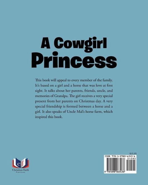 This book will appeal to every member of the family. It's based on a girl and a horse that was love at first sight. It talks about her parents, friends, uncle, and memories of Grandpa. The girl receives a very special present from her parents on Christmas day. A very special friendship is formed between a horse and a girl. It also speaks of Uncle Mal's horse farm, which inspired this book.