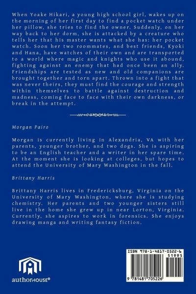 When, Yaoke Hikari, a young high school girl, wakes up on the morning of her first day of school to find a pocket watch under her pillow, she tries to find the owner, but on her way back to her dorm, she is attacked by a creature who tells her that his master wants what she has, the small watch she has found. Soon her two roommates, and best friends, Kyoki and Hana, have watches of their own and are transported to a world where magic and knights who use it abound, fighting against an enemy that had once been an ally. Friendships are tested as new and old companions are brought together and torn apart Thrown into a fight that was never theirs, they must find the courage and strength within themselves to battle against destruction and madness, coming face to face with their own darkness, or break in the attempt.