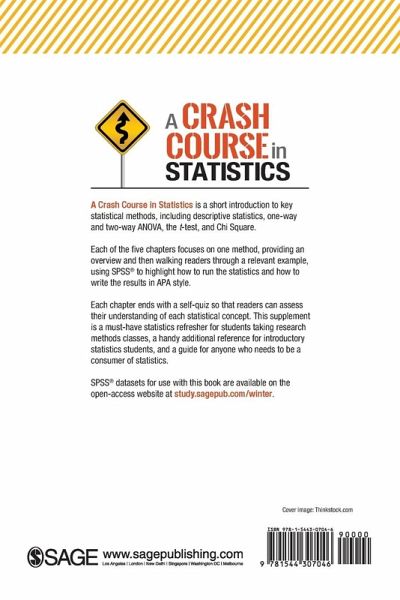 A Crash Course in Statistics by Ryan J. Winter is a short introduction to key statistical methods including descriptive statistics, one-way and two-way ANOVA, the t-test, and Chi Square. Each of the five chapters provides an overview of each method, and then walks readers through a relevant example, using SPSS to highlight how to run the statistics and how to write up the results in APA style. Each chapter ends with a self-quiz so that readers can assess their understanding of each statistical concept. This "crash course" supplement is a must-have statistics refresher for students taking research methods classes; a handy additional reference for introductory statistics students; and a guide for anyone who needs to be a consumer of statistics.