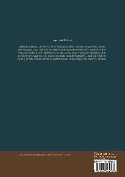 Originally published in 1927, this book analyses a Cretan statuette owned by the Fitzwilliam Museum. Wace then uses this artefact and other representations of Minoan women to reconstruct high-status female dress in the Minoan and Mycenaean civilizations and discuss the practicalities of its construction and possible decoration. This book will be of value to anyone with an interest in ancient Aegean civilizations or the history of fashion.