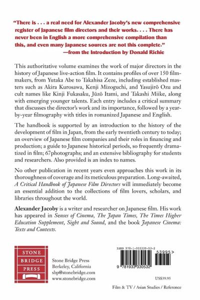 Alexander Jacoby is a freelance writer and film critic. He took his Bachelor's and Master's degrees in English Literature at Emmanuel College, Cambridge, before moving to Kamakura, Japan, where he lived from 2002 to 2005, teaching English at a private language school based in and around the Tokyo area. During this period he developed his interest in Japanese cinema. After returning to Britain, he worked in the media before beginning doctoral studies in Japanese film at the University of Warwick. Donald Richie has been writing about Japan for over 50 years from his base in Tokyo and is the author of over 40 books and hundreds of essays and reviews. He is widely admired for his incisive film studies on Ozu and Kurosawa, and for his stylish and incisive observations on Japanese culture.
