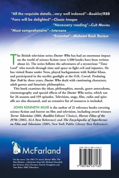 Since its inception in November 1963, the British science fiction television series Doctor Who has exerted an enormous impact on the world of science fiction (over 1,500 books have been written about the show). The series follows the adventures of a mysterious "Time Lord" from the distant planet Gallifrey who travels through time and space to fight evil and injustice. Along the way, he has visited Rome under the rule of Nero, played backgammon with Kublai Khan, and participated in the mythic gunfight at the O.K. Corral. Predating the Star Trek phenomenon by three years, Doctor Who seriously dealt with continuing characters, adult genre principles and futuristic philosophies. Critical and historical examinations of the ideas, philosophies, conceits and morals put forth in the Doctor Who series, which ran for 26 seasons and 159 episodes, are provided here. Also analyzed are thematic concepts, genre antecedents, the overall cinematography and the special effects of the long-running cult favorite. The various incarnations of Doctor Who, including television, stage, film, radio, and spin-offs are discussed. In addition, the book provides an extensive listing of print, Internet, and fan club resources for Doctor Who.