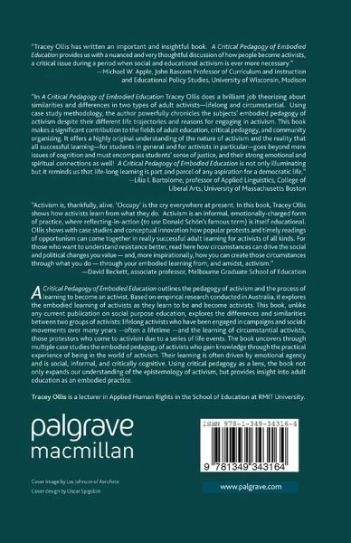 'Tracey Ollis has written an important and insightful book. A Critical Pedagogy of Embodied Education provides us with a nuanced and very thoughtful discussion of how people become activists, a critical issue during a period when social and educational activism is ever more necessary.' - Michael W. Apple, John Bascom Professor of Curriculum and Instruction and Educational Policy Studies, University of Wisconsin, Madison