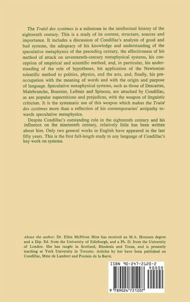 The Traite des systemes is a milestone in the intellectual history of the eighteenth century. This is a study of its content, structure, sources and importance. It includes a discussion of Condillac's analysis of good and bad systems, the adequacy of his knowledge and under standing of the speculative metaphysics of the preceding century, the effectiveness of his method of attack on seventeenth-century metaphysical systems, his conception of empirical and scientific method, and in particular his understanding of the role of hypotheses, his application of the Newtonian scientific method to politics, physics, and the arts, and, finally, his preoccupation with the meaning of words and with the origin and purpose oflanguage. Speculative metaphysical systems, such as those of Descartes, Malebranche, Boursier, Leibniz and Spinoza, are attacked by Con dillac, as are popular superstitions and prejudices, with the weapon of linguistic criticism. It is the systematic use of this weapon which makes the Traite des systemes more than a reflection of his contem poraries' antipathy towards speculative metaphysics. In memory of my MOTHER and FATHER ACKNOWLEDGMENTS I wish to acknowledge my indebtedness to several people. I should like first and foremost to thank Dr. W. H. Barber, who has for many years tirelessly given me encouragement and invaluable assistance. I wish to thank also Professors RH. Rasmussen, A. D. Wilshere and C. Wake for their help and their support in the early days of the preparation of this study. lowe special thanks also to Mrs. M. V.