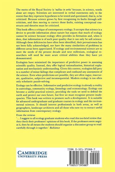 This book offers a critique of contemporary ecology. It accepts that science is a device to provide information about nature but argues that much of ecology cannot be science because ecology often provides no formation and, when it does, that information is of such poor quality that it can only be soft science.