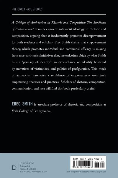 A Critique of Anti-racism in Rhetoric and Composition: The Semblance of Empowerment critiques current antiracist ideology in rhetoric and composition, arguing that it inadvertently promotes a deficit-model of empowerment for both students and scholars. Erec Smith claims that empowerment theory-which promotes individual, communal, and strategic efficacy-is missing from most antiracist initiatives, which instead often abide by what Smith refers to as a "primacy of identity": an over-reliance on identity, particularly a victimized identity, to establish ethos. Scholars of rhetoric, composition, communication, and critical race theory will find this book particularly useful.